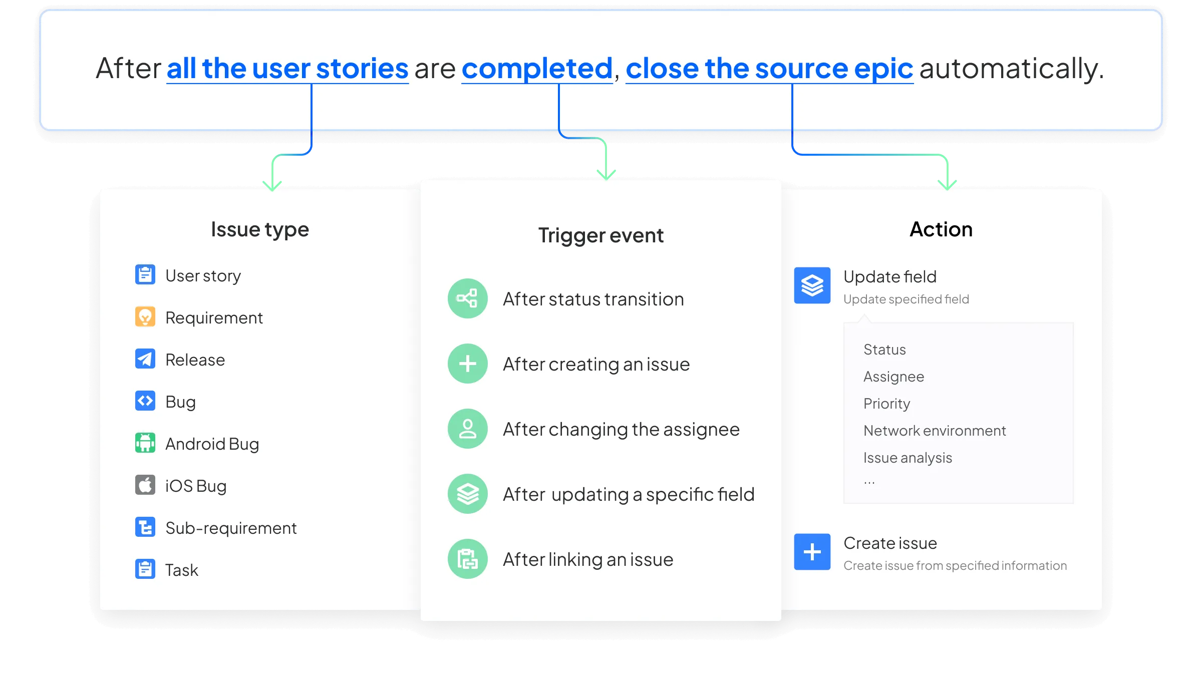Automatically assign tasks, move statuses, update fields and more through triggers and action logic.