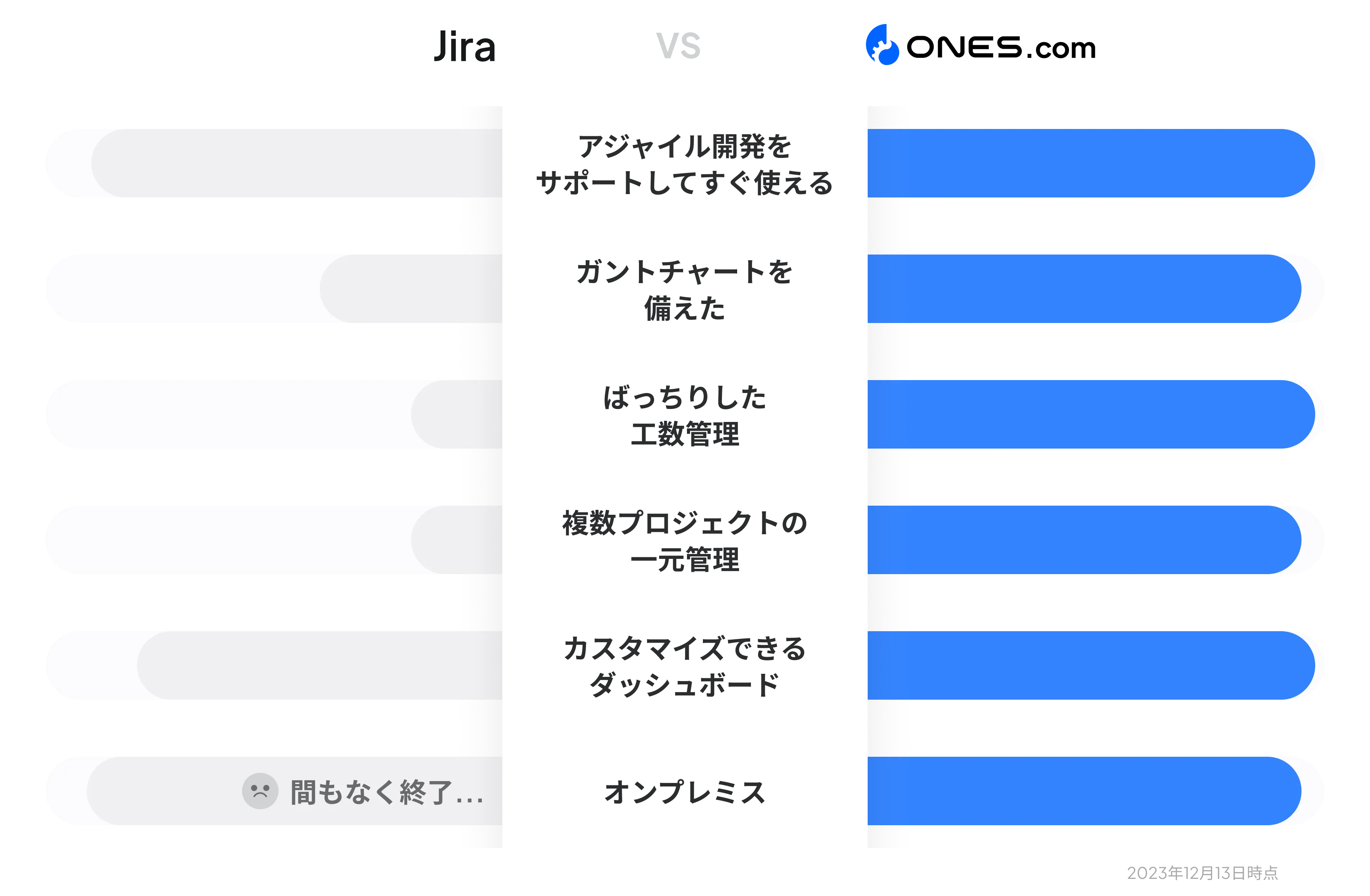 元々備える強力で柔軟な機能だけで、ONES.com は Jira より様々なシナリオにおけるソフトウェア開発に対応できます。